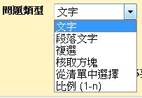 問題類型有六種可以選擇,依照設計問卷功能不同選擇適當的類型